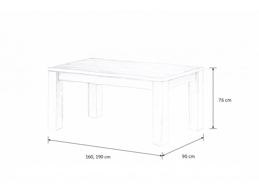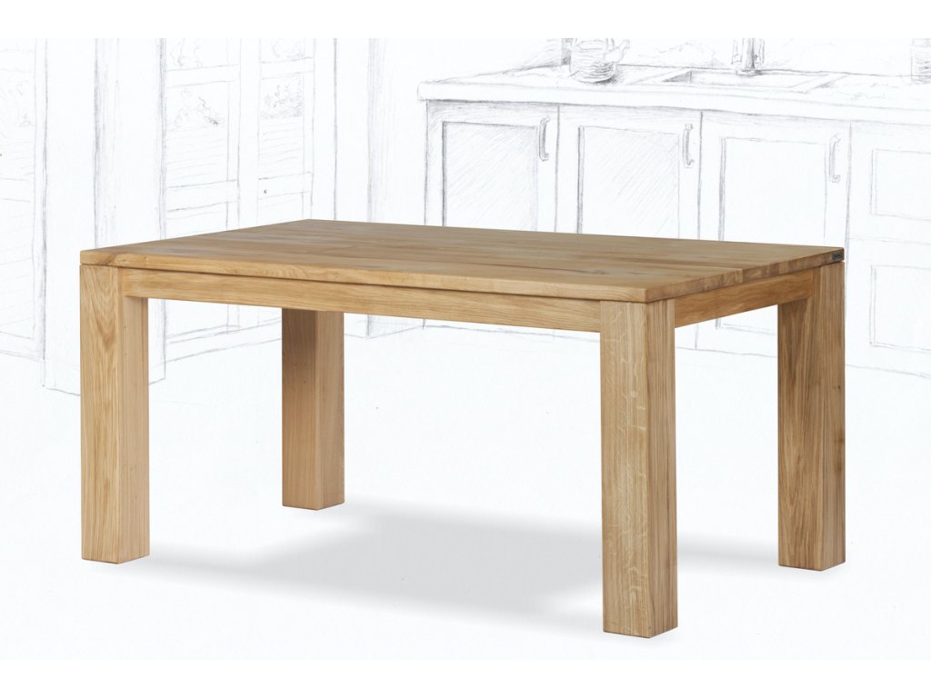 Atypický jídelní stůl Chicago z masivu DUB, 130x90 cm, tl. desky 4 cm, výška 76 cm, odstín Bianco