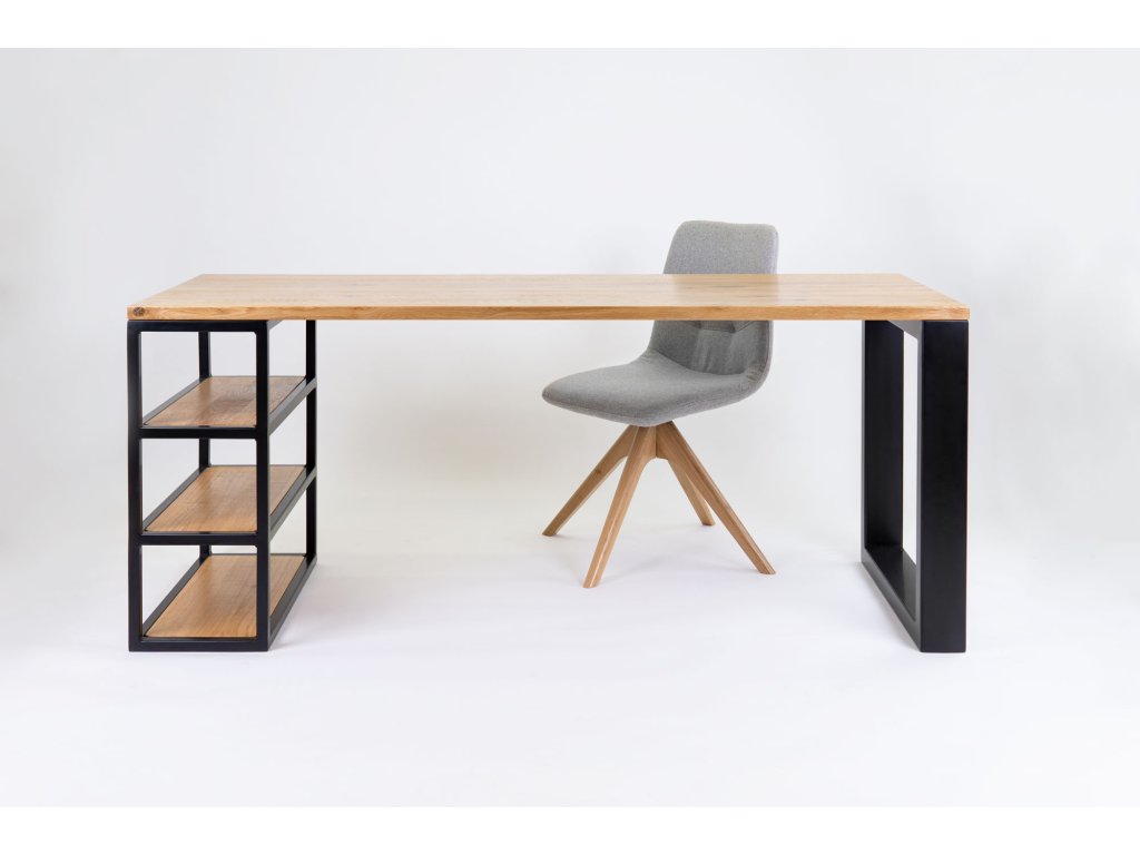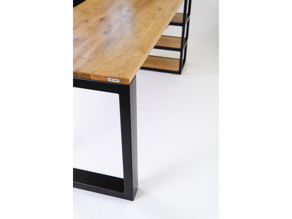 Pracovní stůl Venice z masivu dubu ocení všichni milovníci přírodních materiálů a jednoduchého a elegantního designu. Je vyroben z vysoce kvalitního a precizně opracovaného masivu dubu. Masivní pracovní stůl má příjemně zaoblené hrany a ve spojení s černými ocelovými nohami a praktickými dubovými policemi na jedné straně vytvoří ve spojení s dalším nábytkem z masivního dubu dokonalý dojem. Minimalistický design pracovního stolu a důmyslné umístění polic vám poskytne dostatek úložného prostoru na všechny potřebné předměty. Industriální design nábytku z masivu dubu v kombinaci s černým kovem je nadčasový a elegantní. Precizně vyrobený dubový pracovní stůl je vyrobený v České republice.