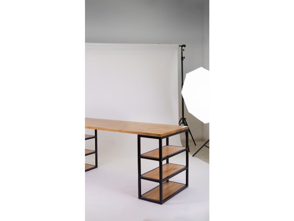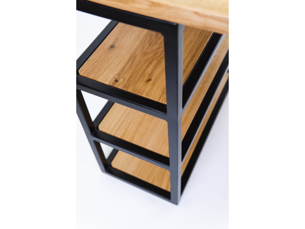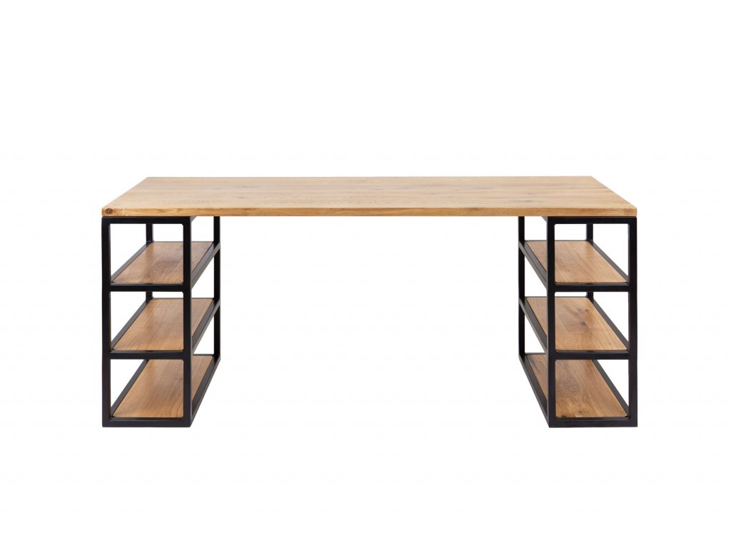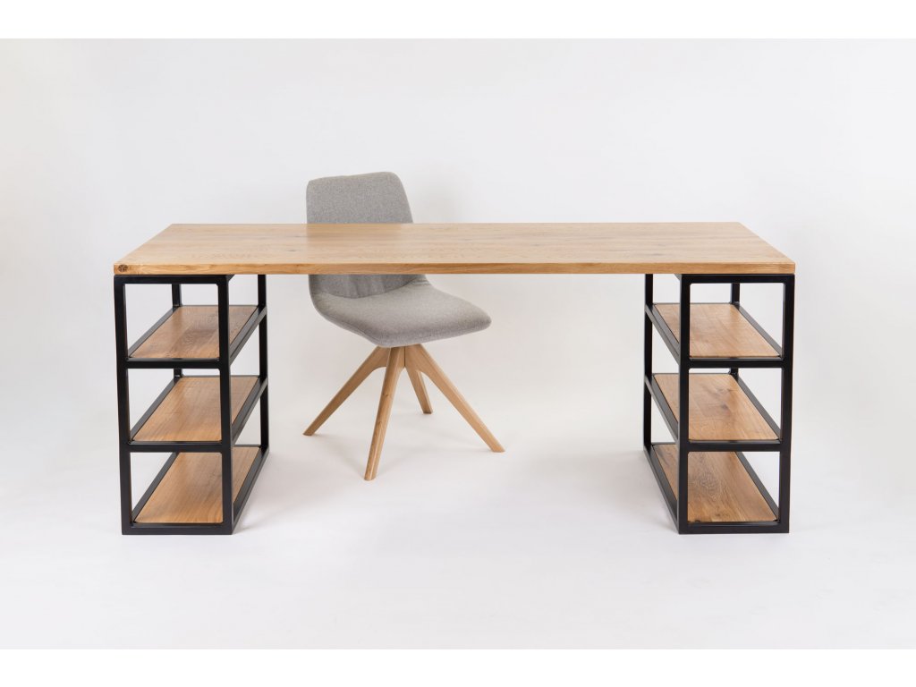Pracovní stůl Arvada z dubového masivu je po obou stranách doplněný praktickými policemi zasazenými do ocelových nohou s černou povrchovou úpravou. Na praktické police umístíte všechny potřebné pomůcky a předměty. Industriální masivní pracovní stůl je unikátním kusem nábytku, který se stane dominantou každé místnosti a skvěle zapadne do moderního interiéru. Masivní dubová deska stolu je vysoce odolná. Tento nádherný designový kousek je vyrobený v České republice. Pracovní stůl z masivu dubu s policemi je kvůli svému jednoduchému elegantnímu designu určen hlavně pro milovníky přírodních materiálů a praktických kousků nábytku.